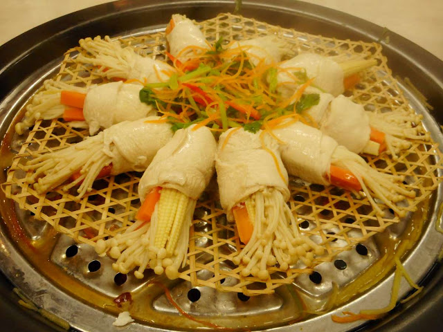 新鲜食材上桌,欸!不是一锅熟倒下锅哦!有专人会招待,坐着等吃就对了!每样食材的蒸煮时间都不一样,最为考功夫的莫过于海鲜类。过火,会变得很有“嚼劲”,太熟啦!所以,时间的拿捏很重要。来来来!看看每份食材蒸煮后的开胃度!二百巴仙开胃!
